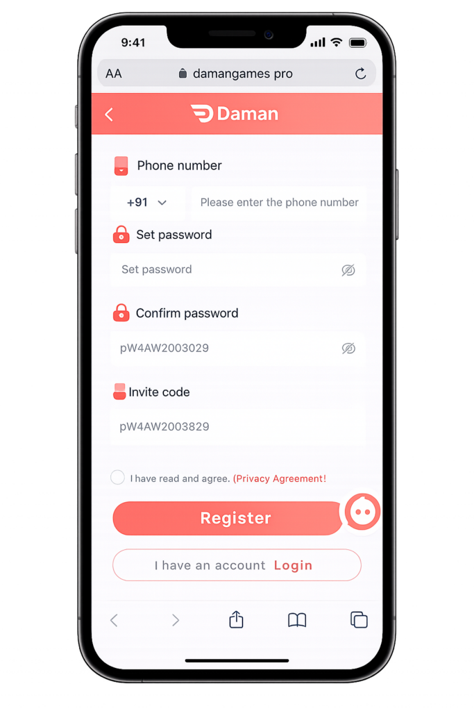 Once registered, you’ll instantly receive a ₹550 bonus, which you can use to start playing exciting color prediction games on Daman.